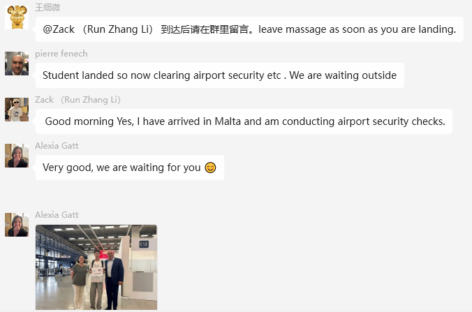 2025年9月10日,我校旅游管理专业张斯涵,酒店管理与数字化运营专业刘钰佳、李润章、张晋轩共四名同学顺利抵达马耳他,即将在马耳他旅游学院开始为期两年的本科阶段学习。马耳他旅游学院校长Pierre Fenech和教师代表Alexia Gatt亲自前往机场迎接,并对同学们的到来表示热烈欢迎。